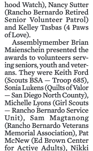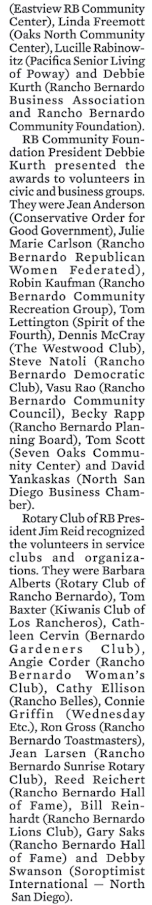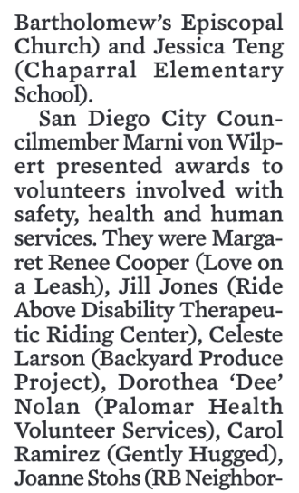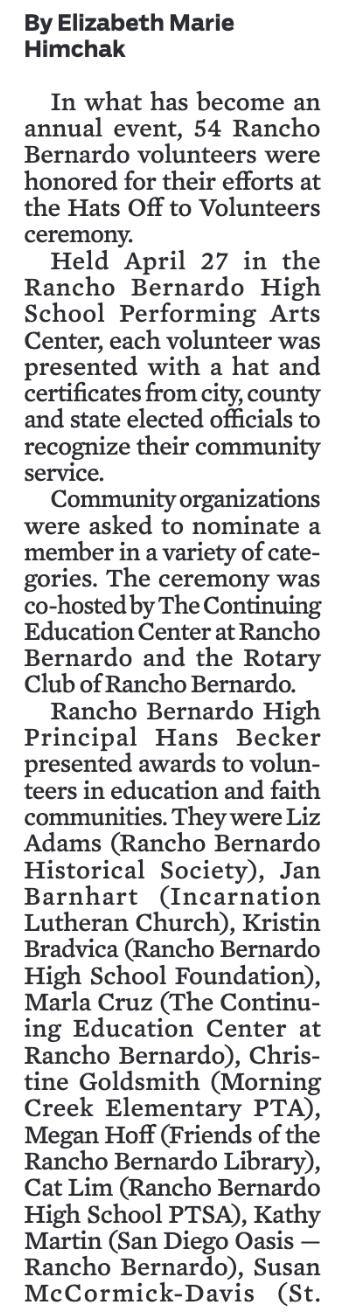 2024 Rancho Bernardo Hats Off To Volunteers Coverage in the
